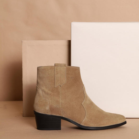 Exclusivité webSOLEINE bottines à talon en cuir camel