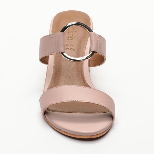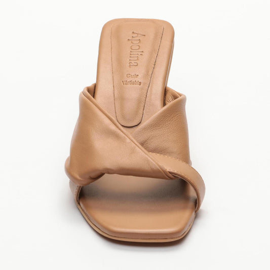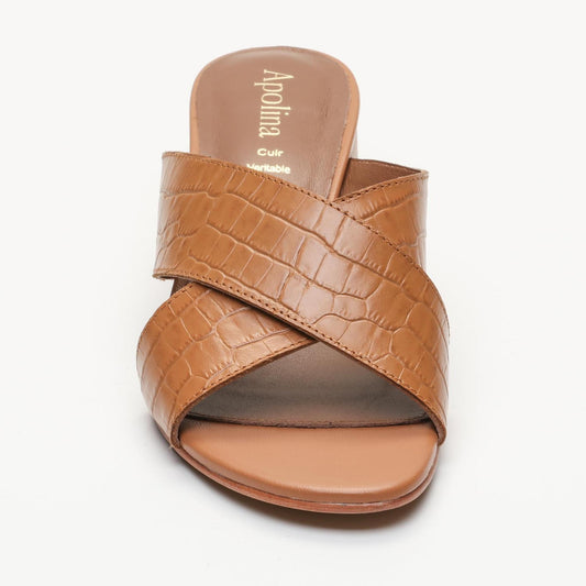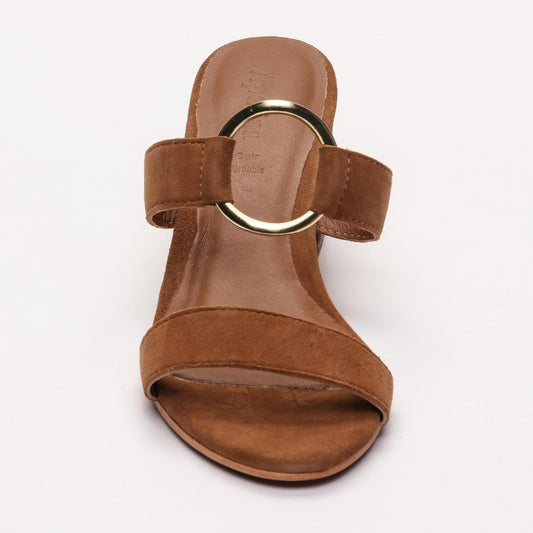 Exclusivité webRENEE mules à talon en cuir brun clair