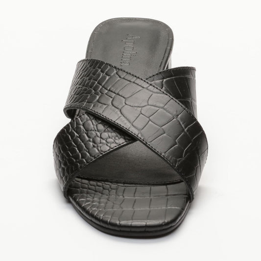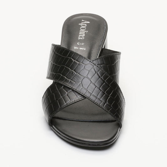 Exclusivité webBAUDI mules à talon en cuir croco brun