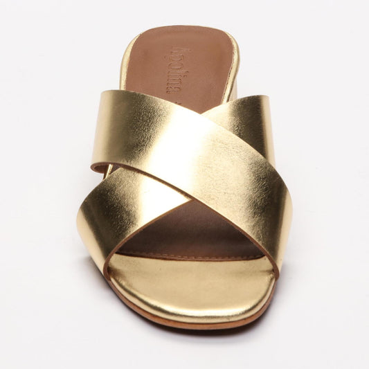 Exclusivité webOHIA mules à talon en cuir doré foncé