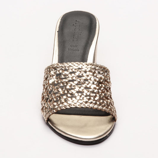 Exclusivité webBAUDI mules à talon en cuir croco doré clair