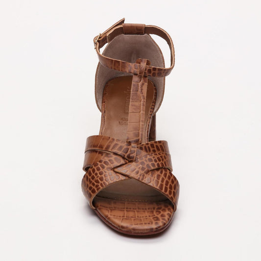 MOLLY sandales à talon en cuir croco brun