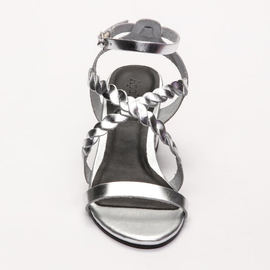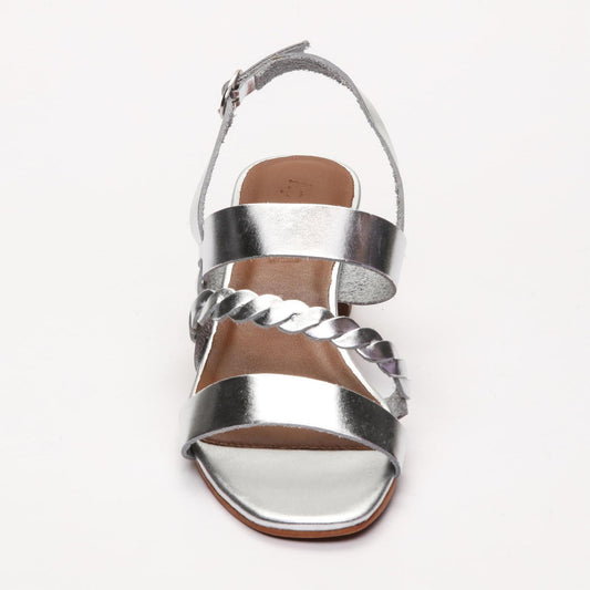 Exclusivité webRACHEL sandales à talon en cuir argent