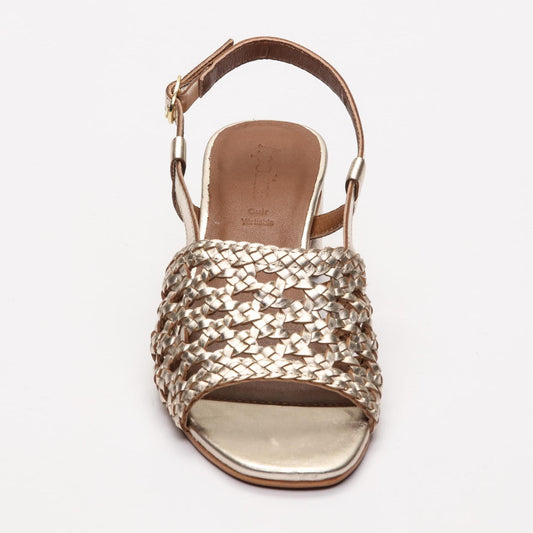 Exclusivité webRAYNA sandales à talon en cuir doré