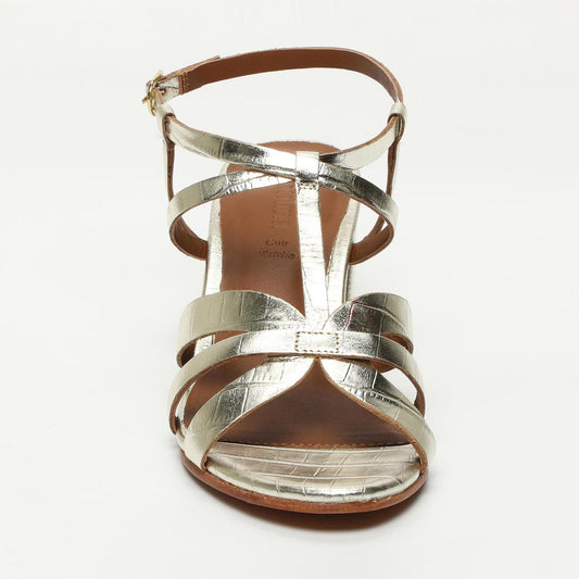 SALLY sandales à talon en cuir croco doré clair