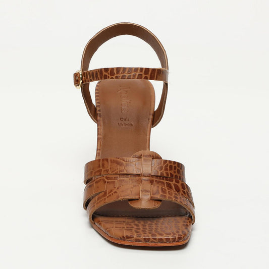 Exclusivité webMALIA sandales à talon en cuir croco brun
