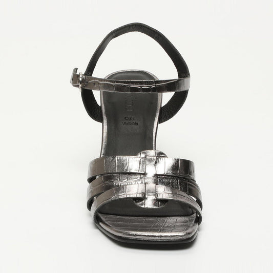 Exclusivité webMALIA sandales à talon en cuir croco pewter