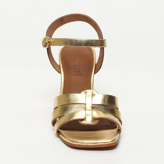 Exclusivité webMALIA sandales à talon en cuir doré foncé
